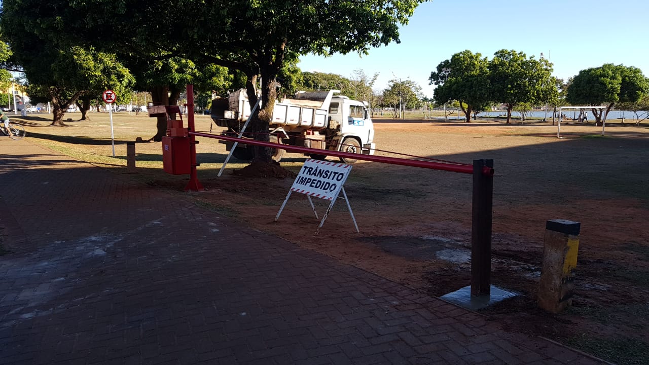 A licença ambiental da Lagoa Maior proíbe o trânsito de veículos em toda a extensão da Lagoa, incluindo a orla e as calçadas. Então, foi solicitada a instalação das cancelas nas duas laterais do Ginásio Poliesportivo Professor “Eduardo Antônio Milanez”.