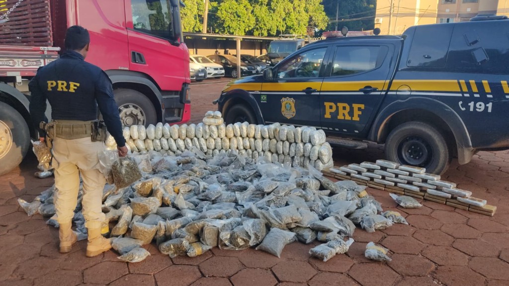 A Polícia Rodoviária Federal (PRF) apreendeu 1.292 quilos de maconha, nesta segunda-feira (24), em Terenos (MS).