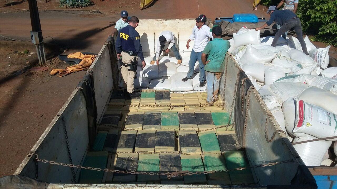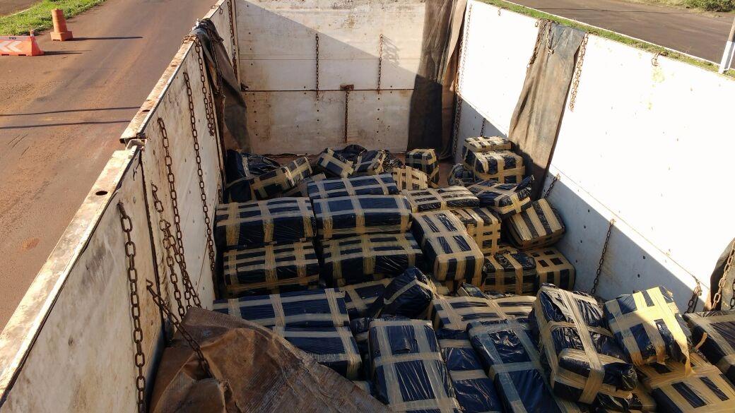 A droga estava escondida em uma carreta, sob uma carga de aveia. O veículo foi abordado por uma equipe da PRF nas imediações da Ponte Ayrton Senna, na BR 163.