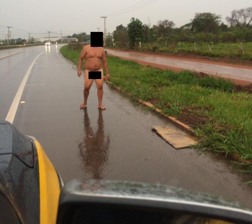 A Polícia Rodoviária Federal (PRF) prendeu nesta semana um homem sem roupas, que estava trafegando a pé pela rodovia BR-158 em Três Lagoas.