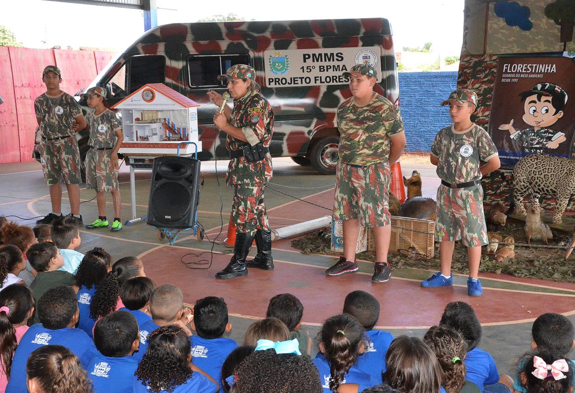 Uma equipe do Projeto Florestinha, Unidade I de Campo Grande, sob a coordenação da subtenente Eveny do 15º Batalhão da Polícia Militar Ambiental (15º BPMA) de Mato Grosso do Sul, desde segunda-feira (15) vem realizando trabalho de educação ambiental em algumas unidades escolares da Rede Municipal de Ensino de Três Lagoas.