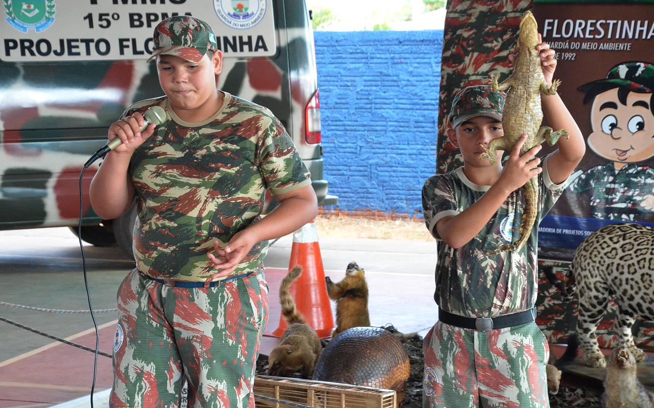 A equipe, constituída pela subtenente Eveny da PMA, um estagiário de Biologia e ex-aluno do Projeto Florestinha, Douglas Melo, e os atuais alunos florestinhas, Juan (12), Vitor (12), Daniel (11) e Eduardo (13), todos de Campo Grande, participam de projeto de educação ambiental nas escolas, com o apoio da Empresa Distribuidora de Gás de Mato Grosso do Sul (MS Gás).