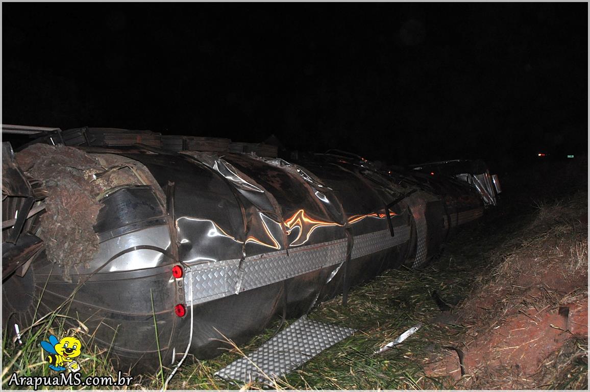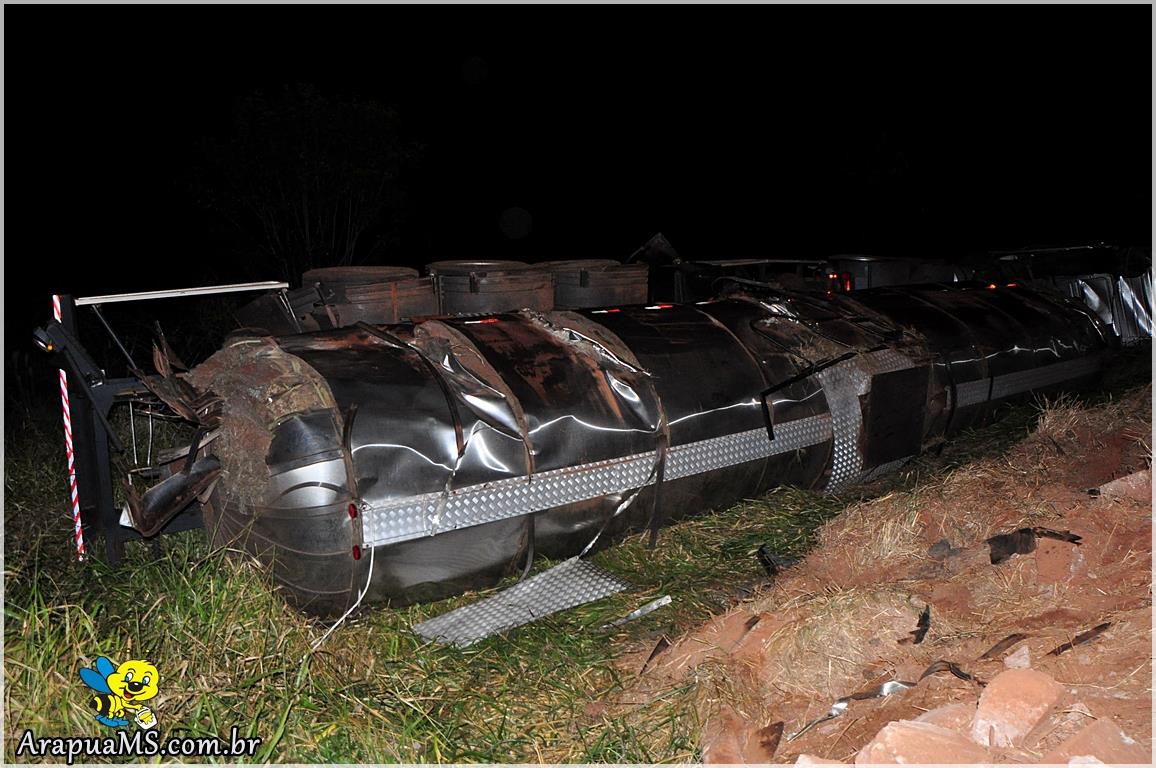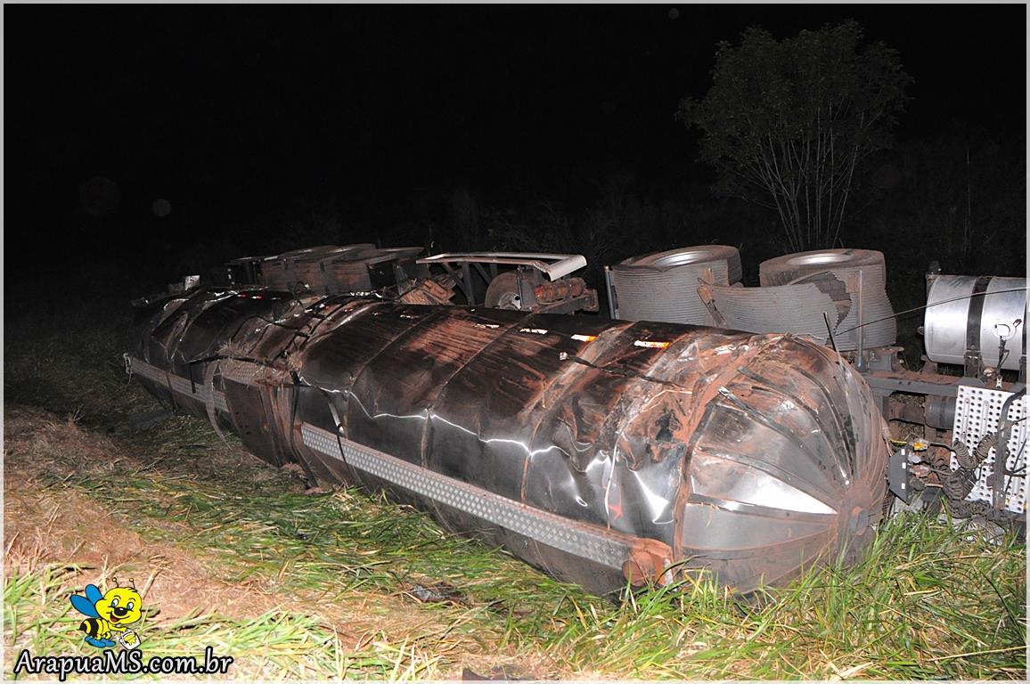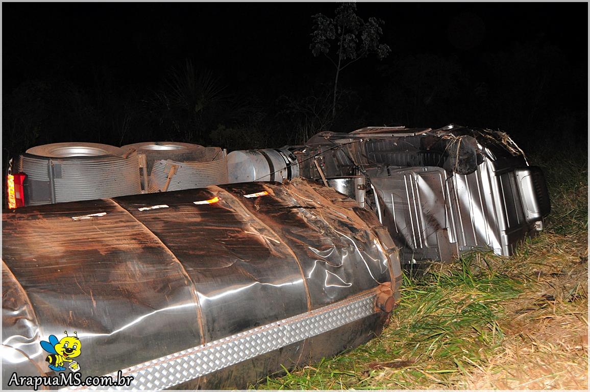 Uma carreta carregada com produtos que seria usado em asfalto, estava indo em direção Campo Grande, quando perdeu o controle, caiu numa ribanceira, próximo ao córrego do local conhecido como Galeria, próximo do Assentamento 20 de Março, justo no local onde não foi colocado o guard rail ou defensa metálica, proteção que geralmente aparece nas margens de pistas de automobilismo e em muitas estradas públicas.