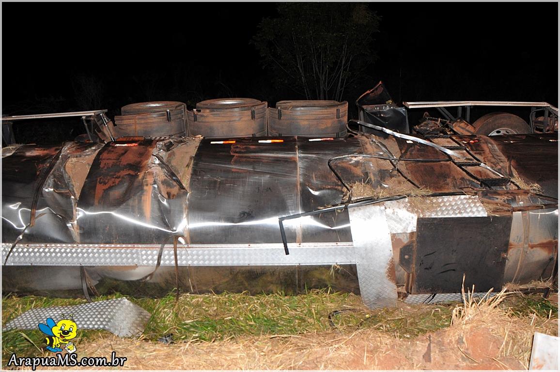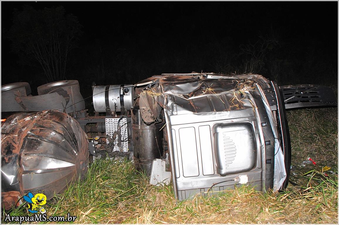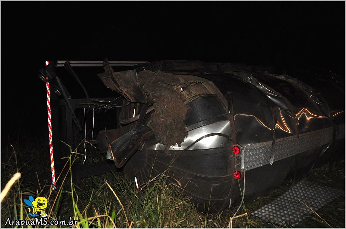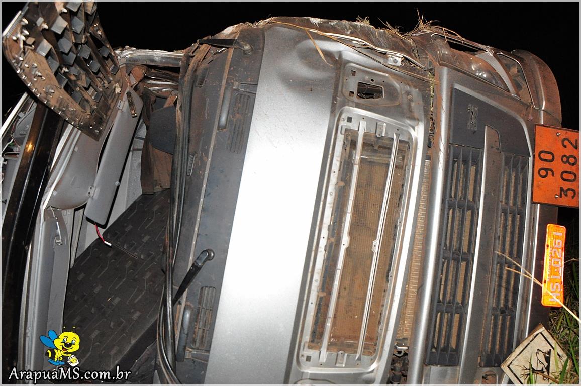 A reportagem do ArapuáMS registrou fotos do caminhão as 20h, no local estava o proprietário do caminhão, muito abalado com o acontecido com seu funcionário, mais um acidente que entra para a estatística da rodovia 262.
