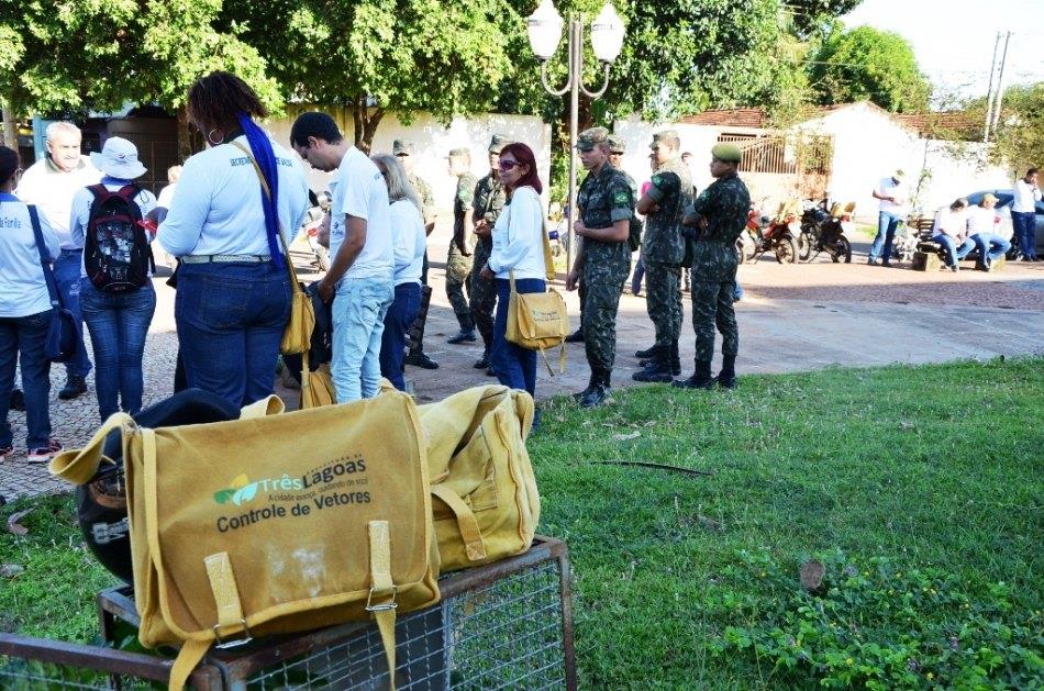 A Saúde do município de Três Lagoas e os soldados da 2ª Cia de Infantaria do Exército Brasileiro uniram forças no combate ao mosquito Aedes Aegypti. O mutirão teve início na manhã desta segunda-feira (18), na Praça do Obelisco, onde os agentes comunitários de saúde e de endemias junto com os soldados se concentraram para darem início os trabalhos.