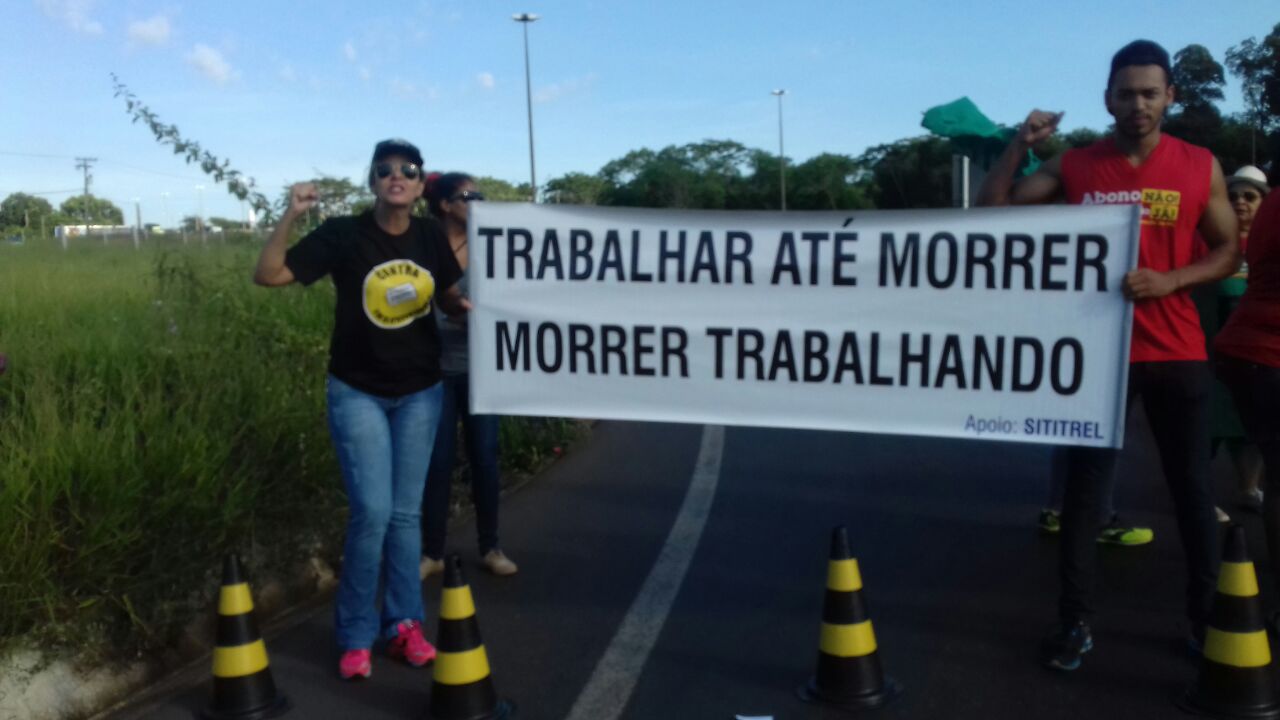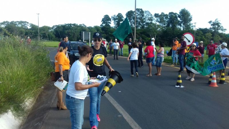 Sindicatos e representantes três-lagoenses fecha rodovia contra a reforma da previdência