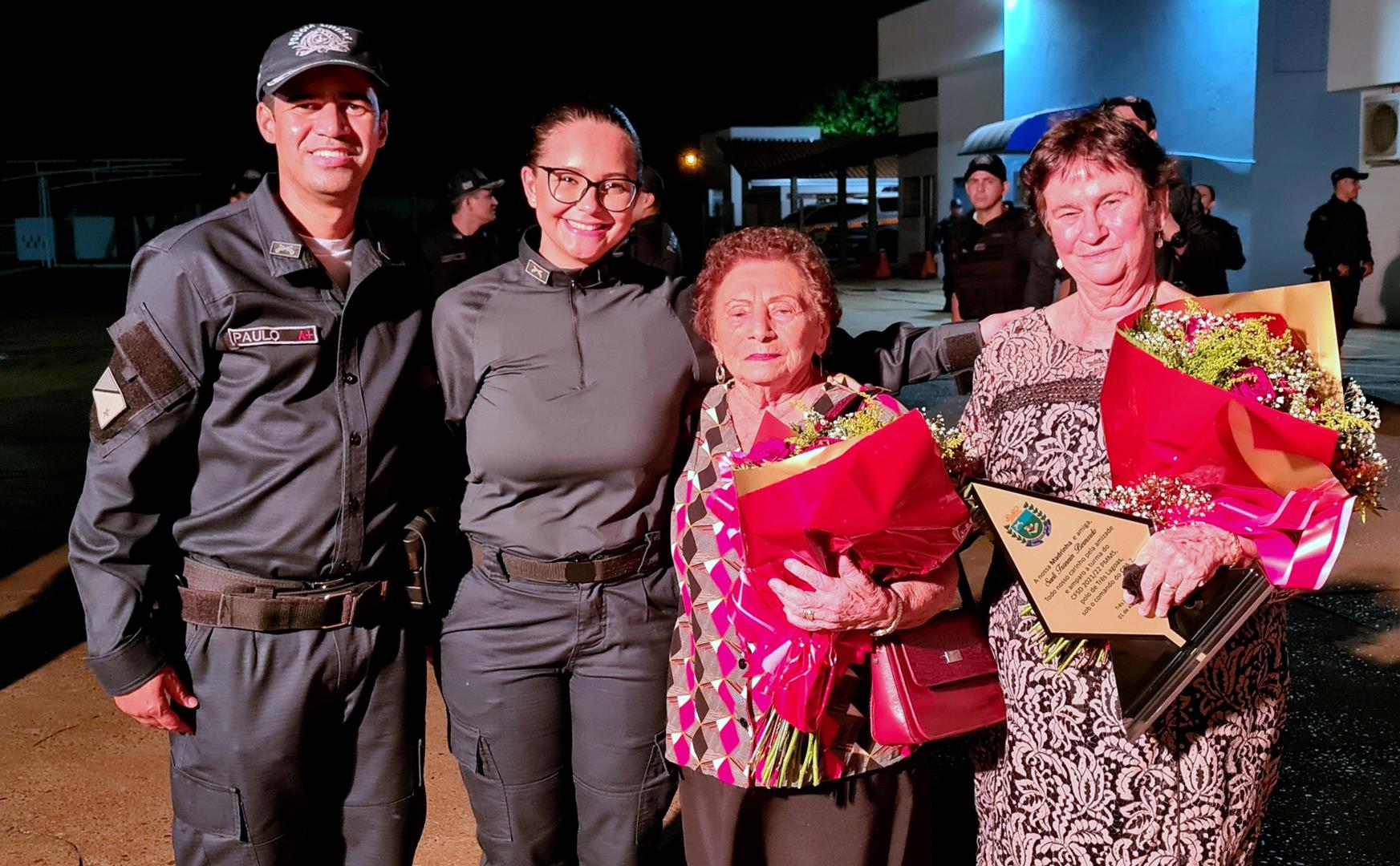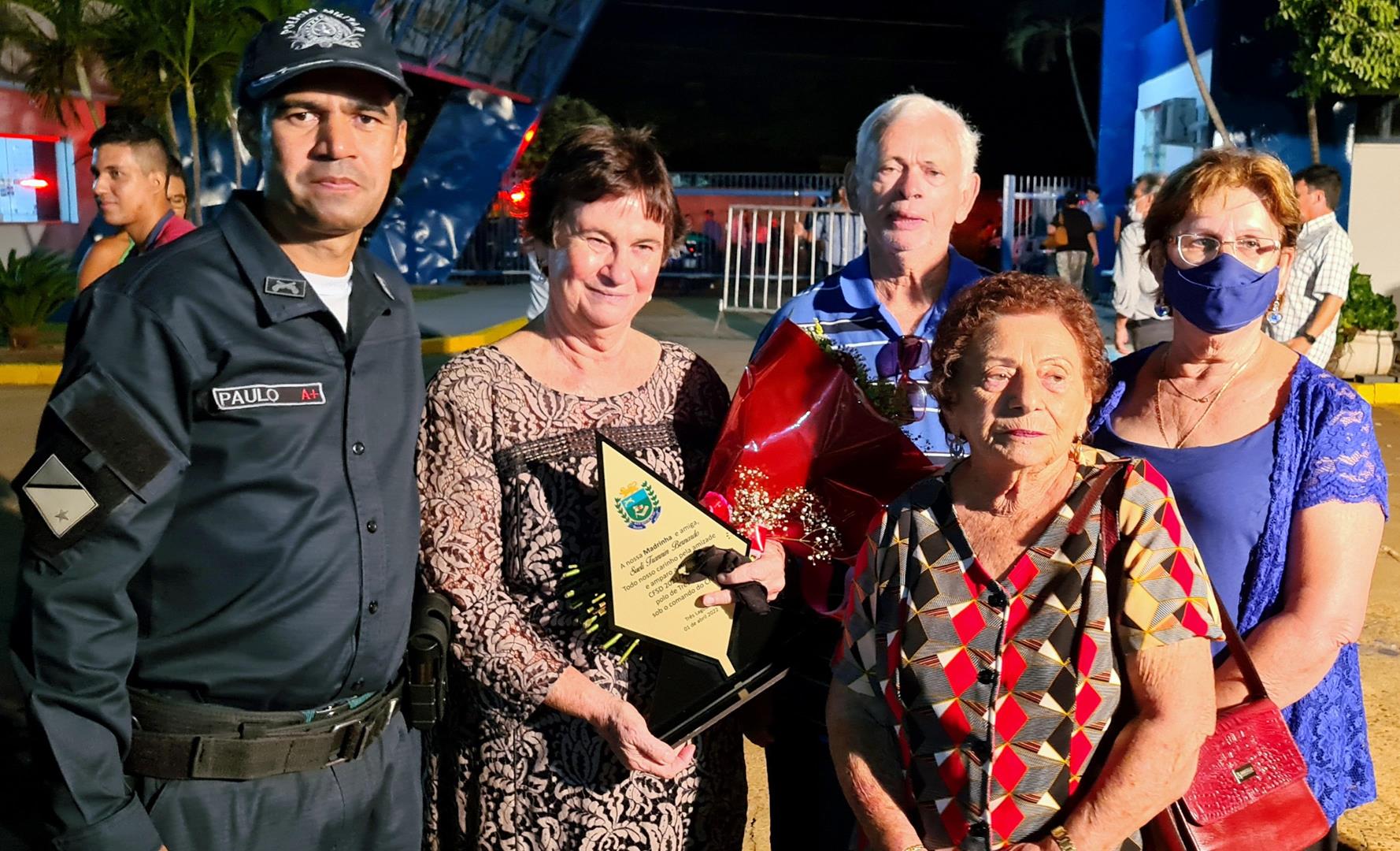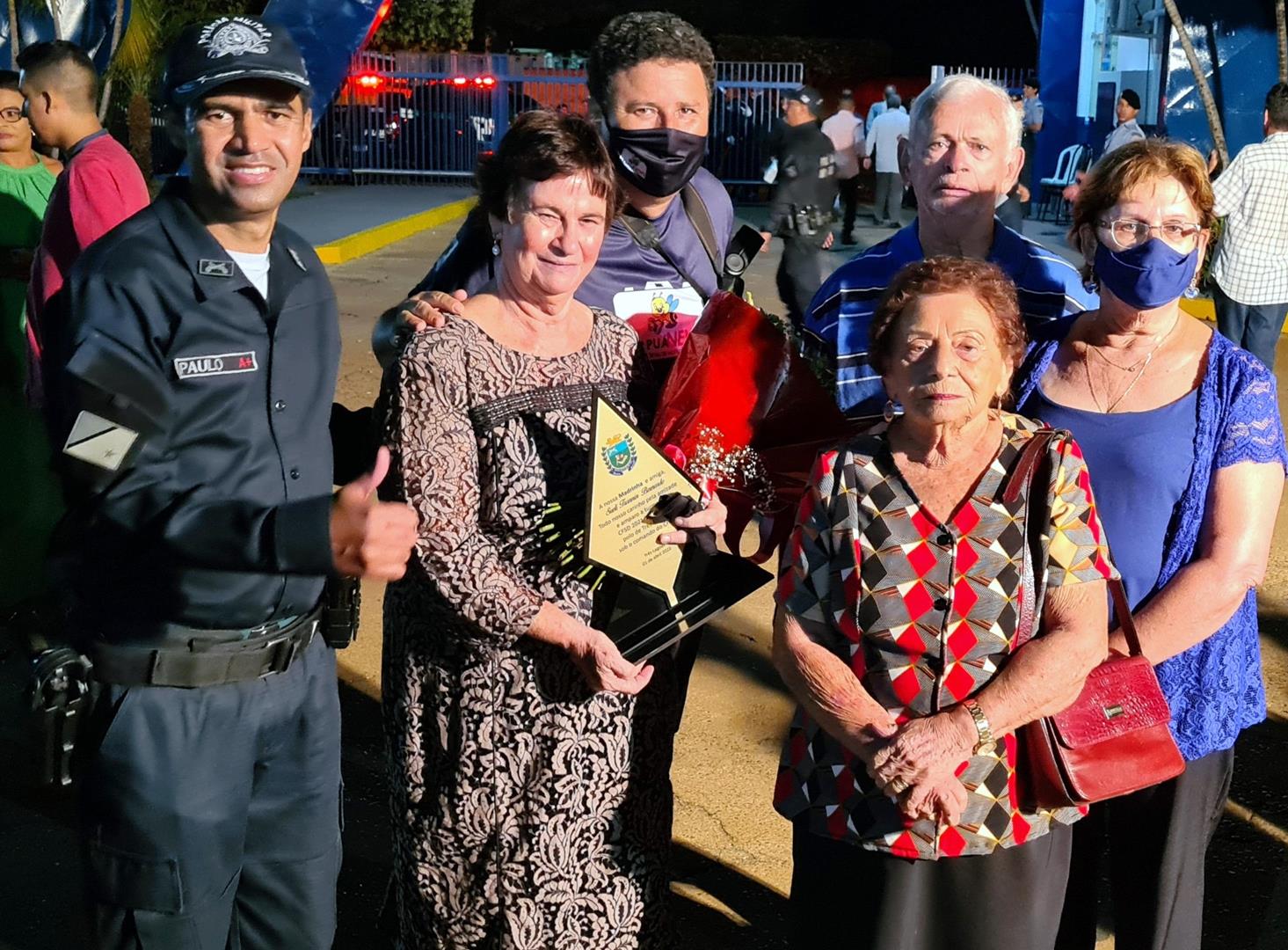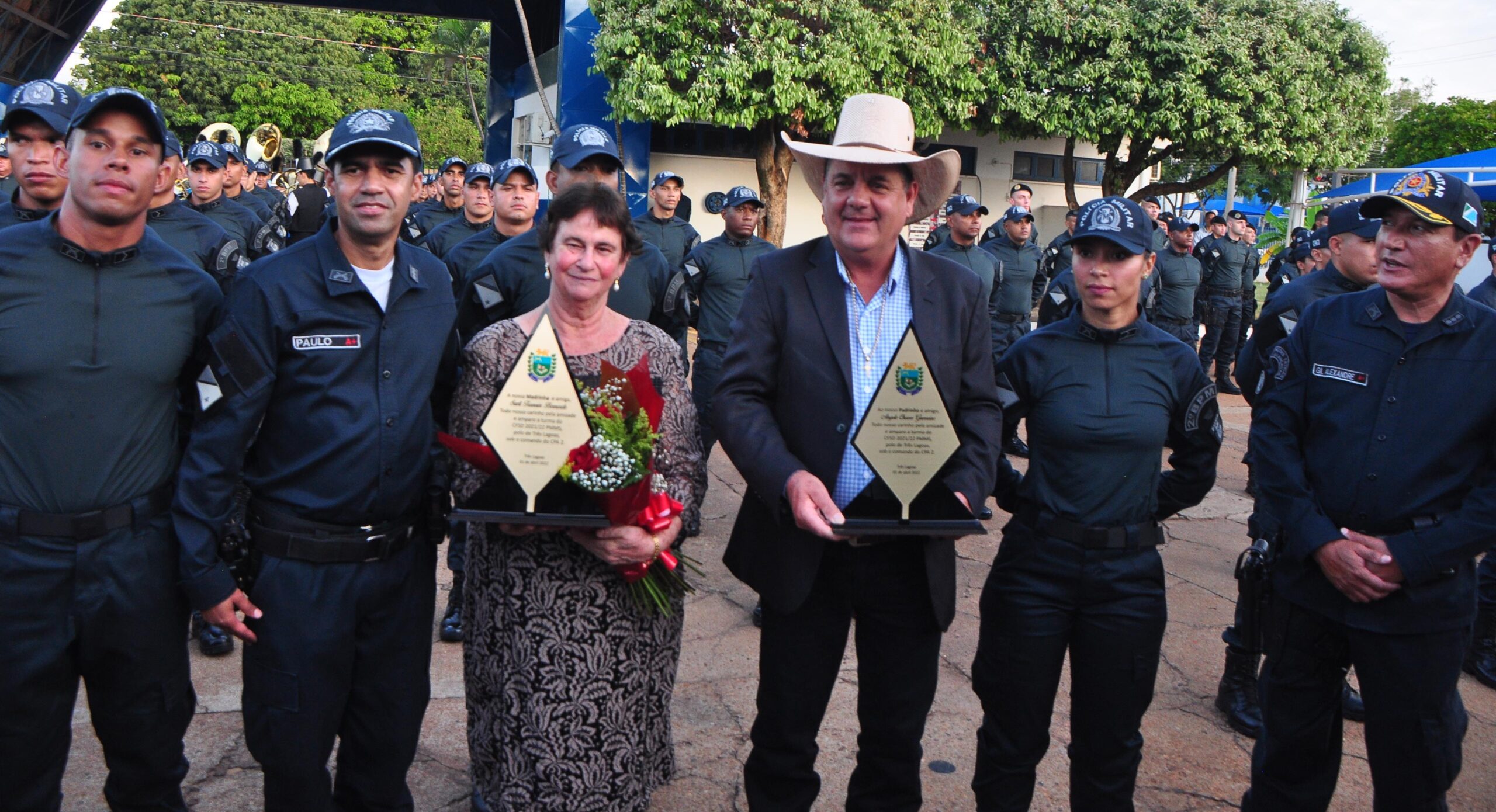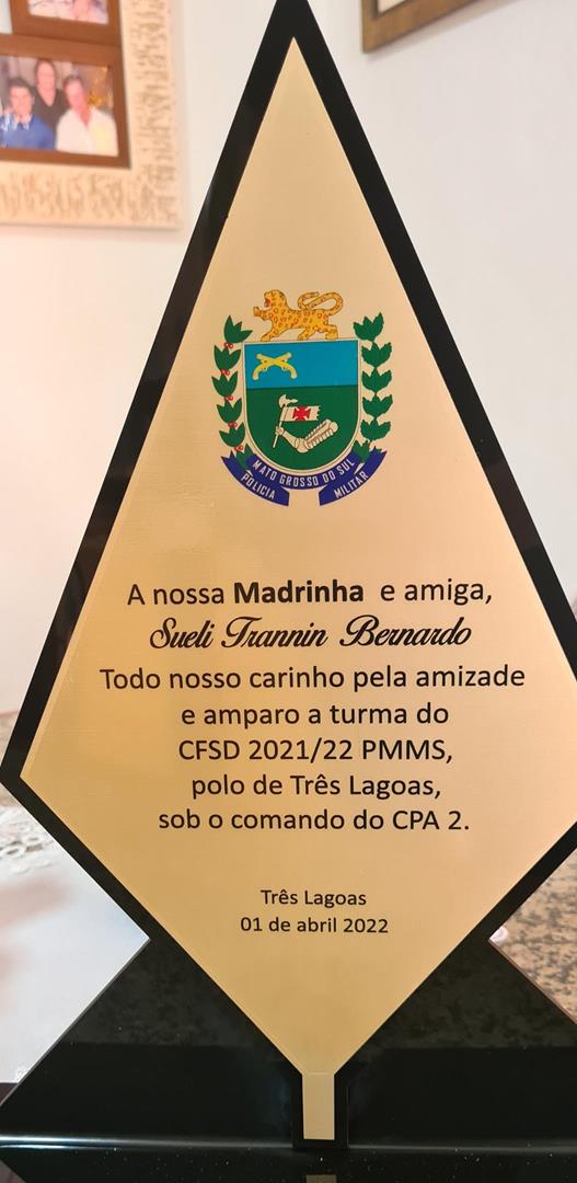 Madrinha de honra da 36º Turma, Sueli Trannin foi homenageada na cerimônia, juntamente com o Padrinho o Prefeito de Três Lagoas Angelo Chaves Guerreiro, o Diretor do Polo de ensino Coronel QOPM Gil Alexandre da Rocha e o Subdiretor TC QPPM Paulo Ribeiro dos Santos.