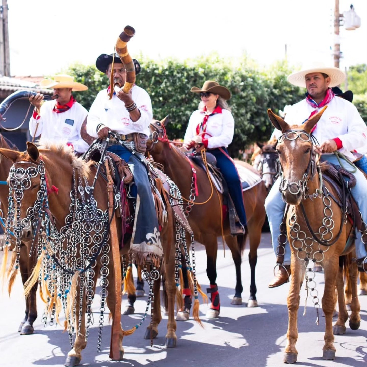 A cavalgada contou com a participação de aproximadamente 20 comitivas da região, que percorreram 8 km pelas principais ruas e avenidas da cidade, exibindo trajes típicos.