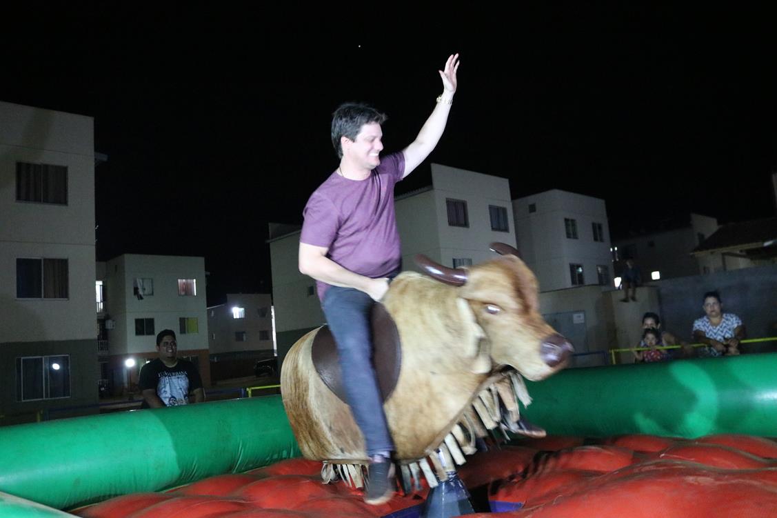 Na noite da última quinta-feira (17), o vereador André Bittencourt e equipe realizaram a 2ª etapa do Circuito de Touro Mecânico através do projeto “Amigos do Bairro”. A ação aconteceu no bairro Novo Oeste 2 e contou com a presença de vários moradores, inclusive famílias.